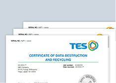 テスアムではお客様のご要望により、記録メディア破壊結果の詳細をまとめたレポートおよびデータ破壊証明書を提供致します。
